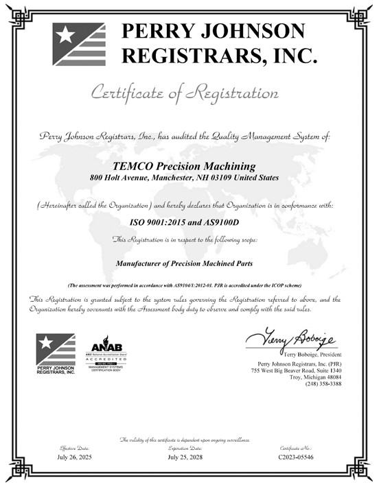Comprised of a versatile team of quality technicians and specialists with overlapping training and skillsets, TEMCO™’s quality team can quickly react to the demands for your parts.
